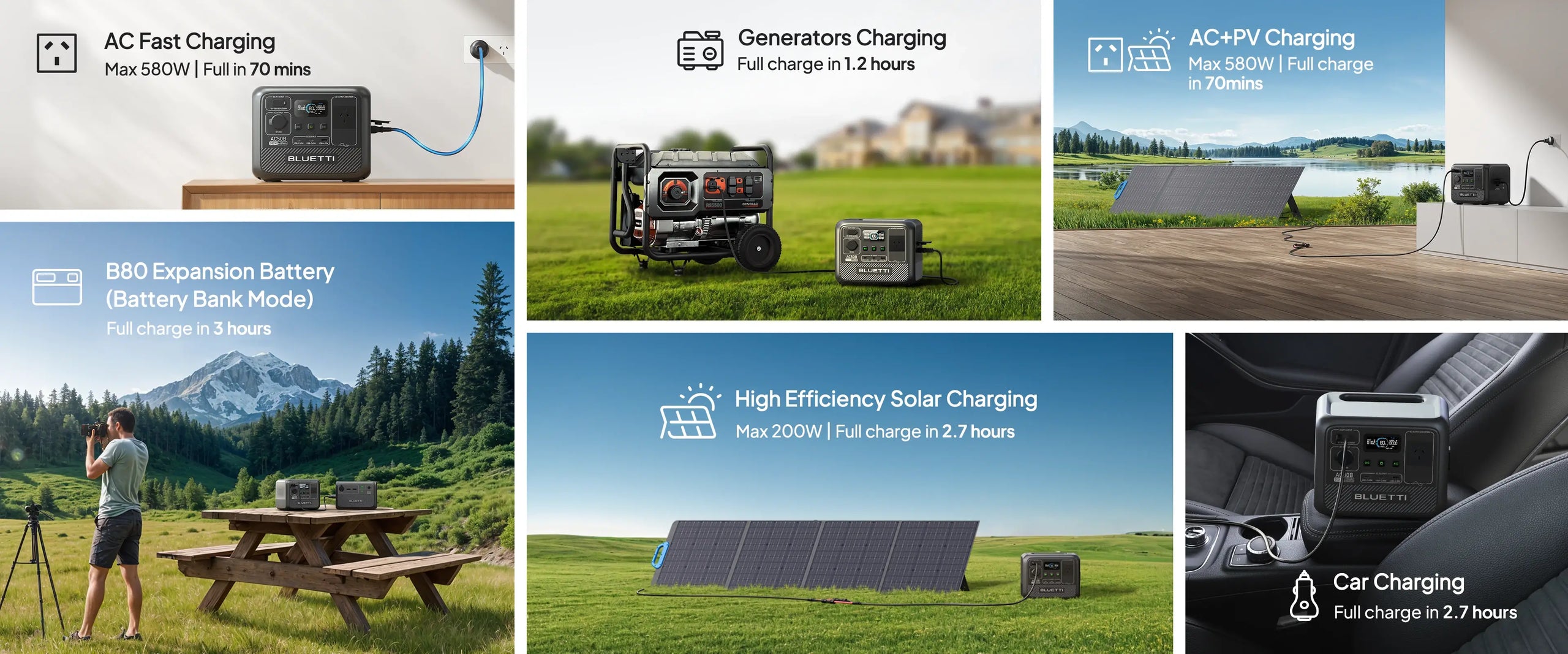 Daytime Solar: Recharge during the day with solar panels, allowing you to power your devices while simultaneously replenishing the battery.