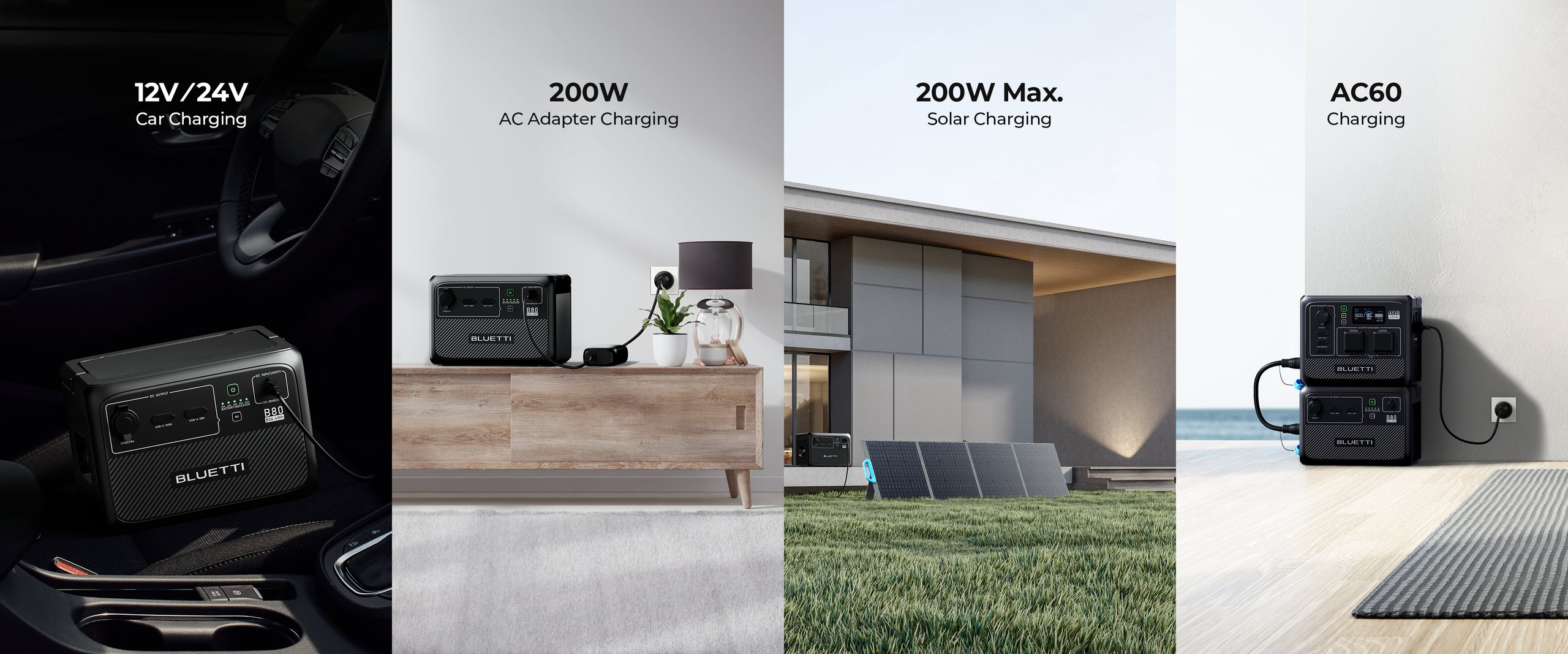 1× BLUETTI PV200: ≈ 4.5-5 hrs*.