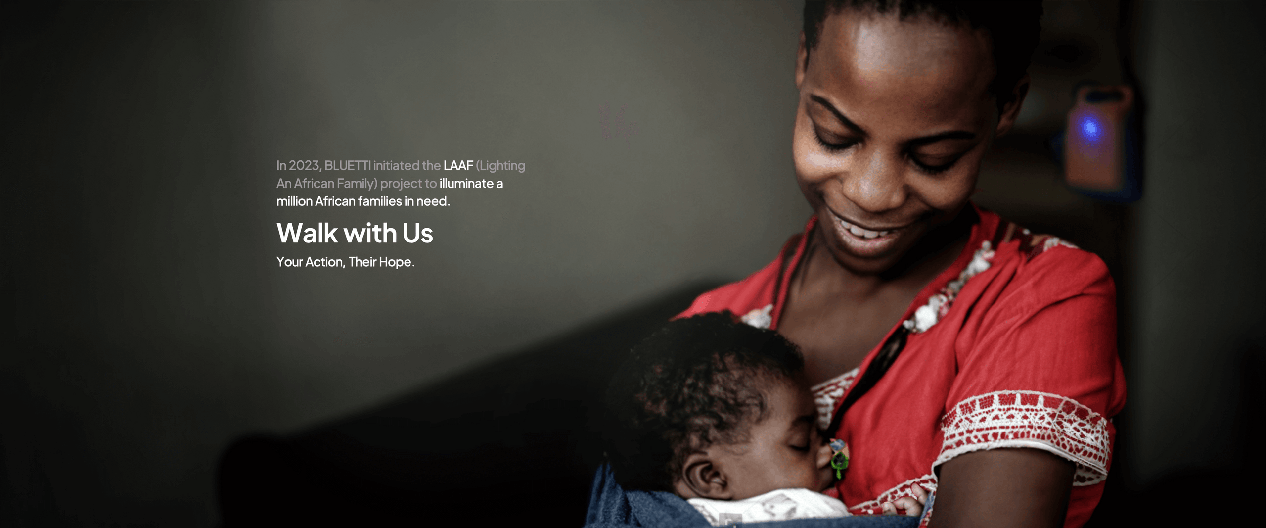 Join BLUETTI's mission with LAAF to brighten homes and support education. For every AC300/AC500 unit purchased, we donate a solar power system to families, ensuring well-lit living spaces and equal learning opportunities for children.