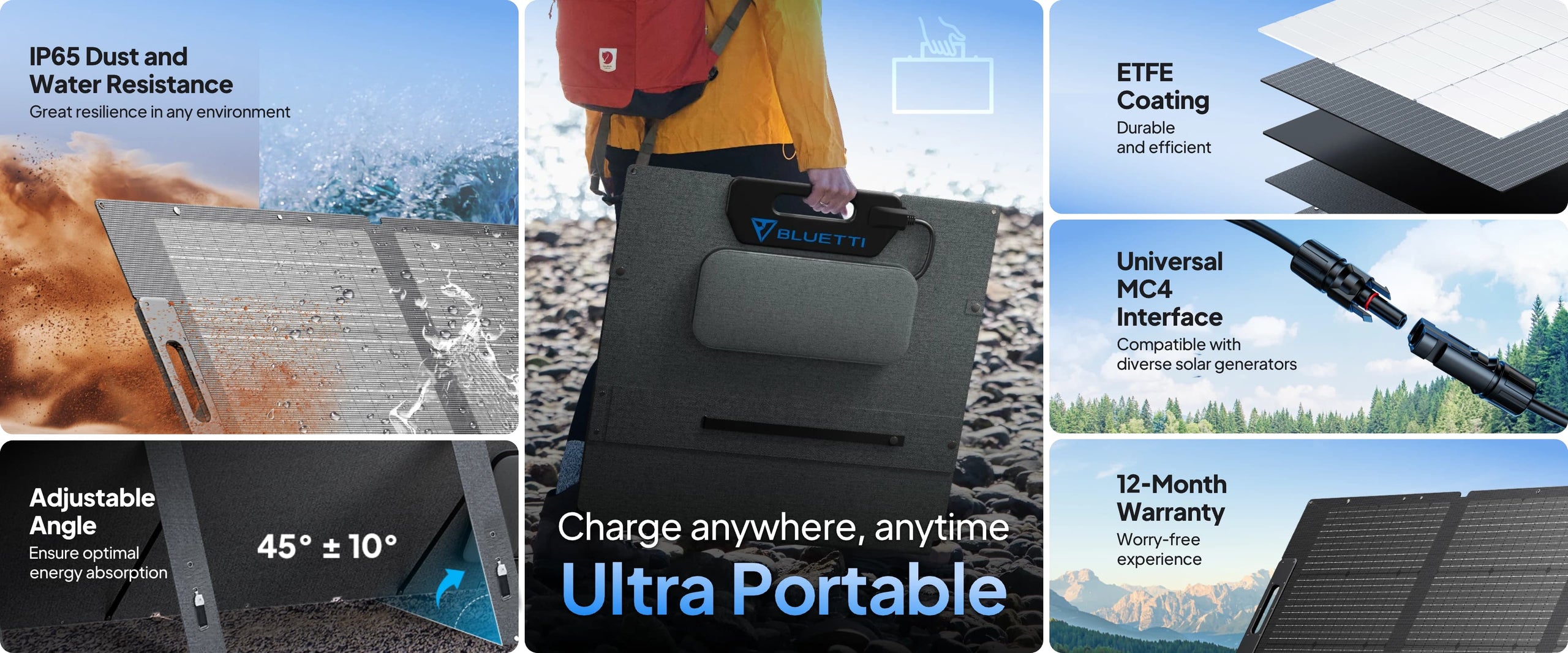 * Compatible BLUETTI Models: EB3A / EB55 / EB70 / AC2A / AC50B / AC60 / AC70 / AC180 / AC180T/ AC200L / AC200P / AC200MAX / AC300 / AC500 / EP500 / EP500Pro / B80 / B210 / B230 / B300 / MultiCooler