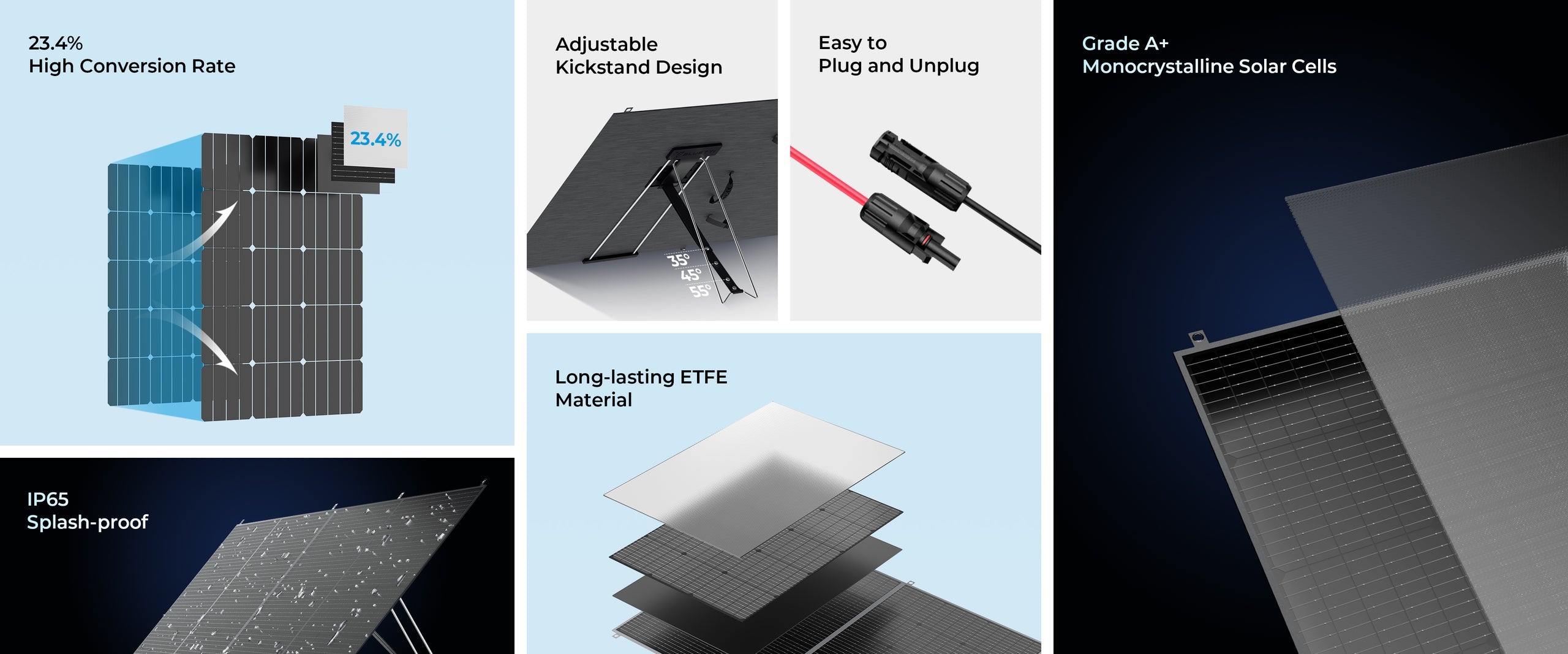 A:BLUETTI PV420 has undergone enough reliability tests and offers an IP65 water resistance rating. However, to get an even longer lifespan in the right environment, we don’t suggest putting them in direct contact with rain for too long.
