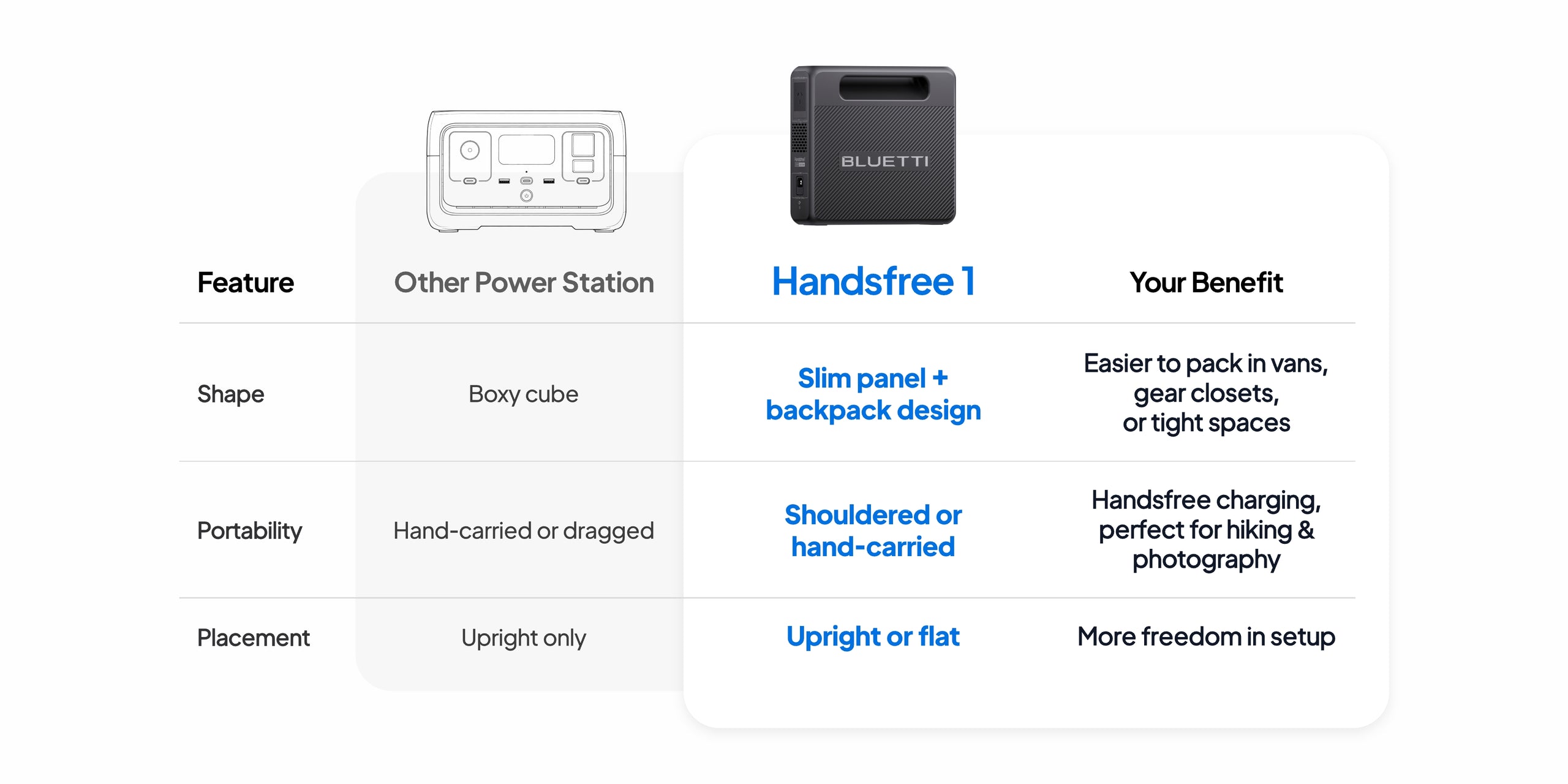 1. Bulit with an all-new modular wireless design and high-density LiFePO4 battery cells, its compact structure is 3X thinner than traditional power stations.