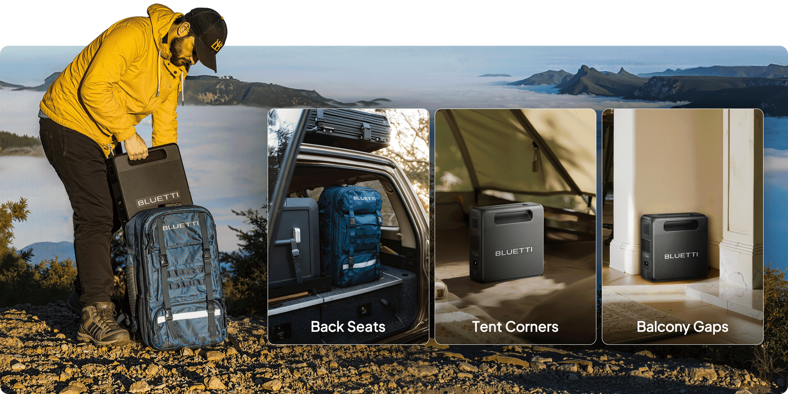 The backpack's quick-access side opening are perfectly aligned with the power output ports, allowing easy charging on the go. Meanwhile, the U-shaped opening is designed for optimal ventilation, so you can charge safely and conveniently without worry about overheating. An ideal companion for outdoor photography, camping, hiking, climbing, etc.