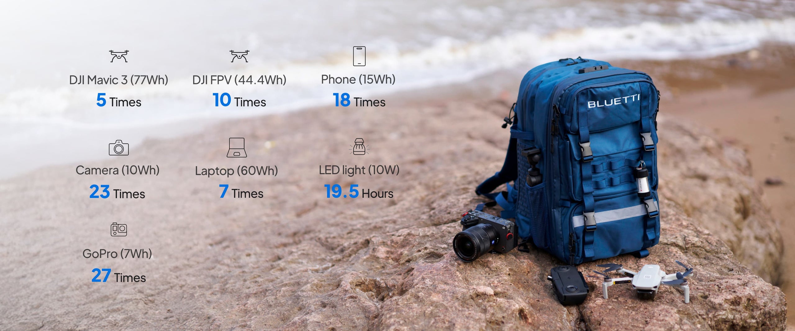 Charge up to 5 devices simultaneously, including your drone, controller, camera, smartphone, and laptop. With extended battery life, you can stay powered up and ready for action without the hassle of waiting in line.