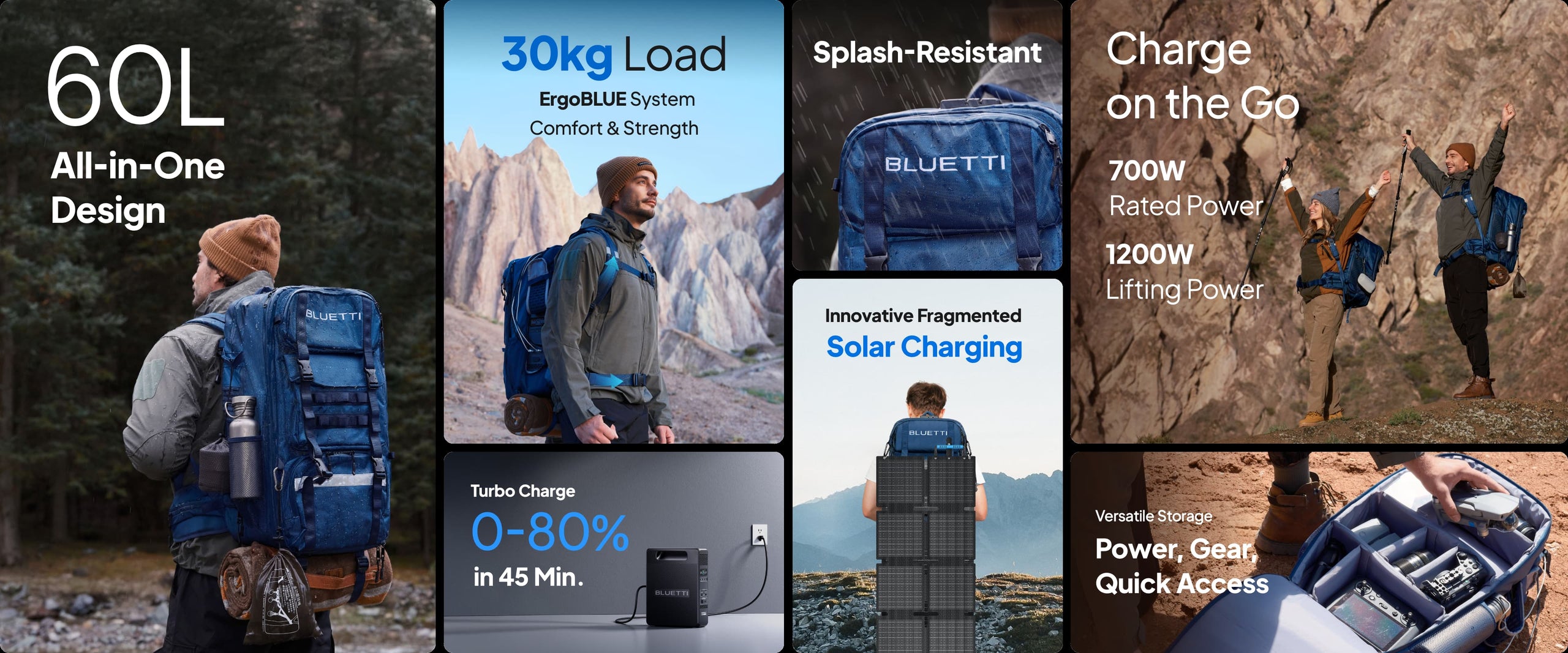 A: The BluePack backpack features a partitioned storage system, allowing you to customize compartments for different devices. The sturdy support frame and base offer strong protection while the tightly wrapped design with extra cushioning effectively absorbs shocks during movement. BluePack can meet all your outdoor storage and power needs. -