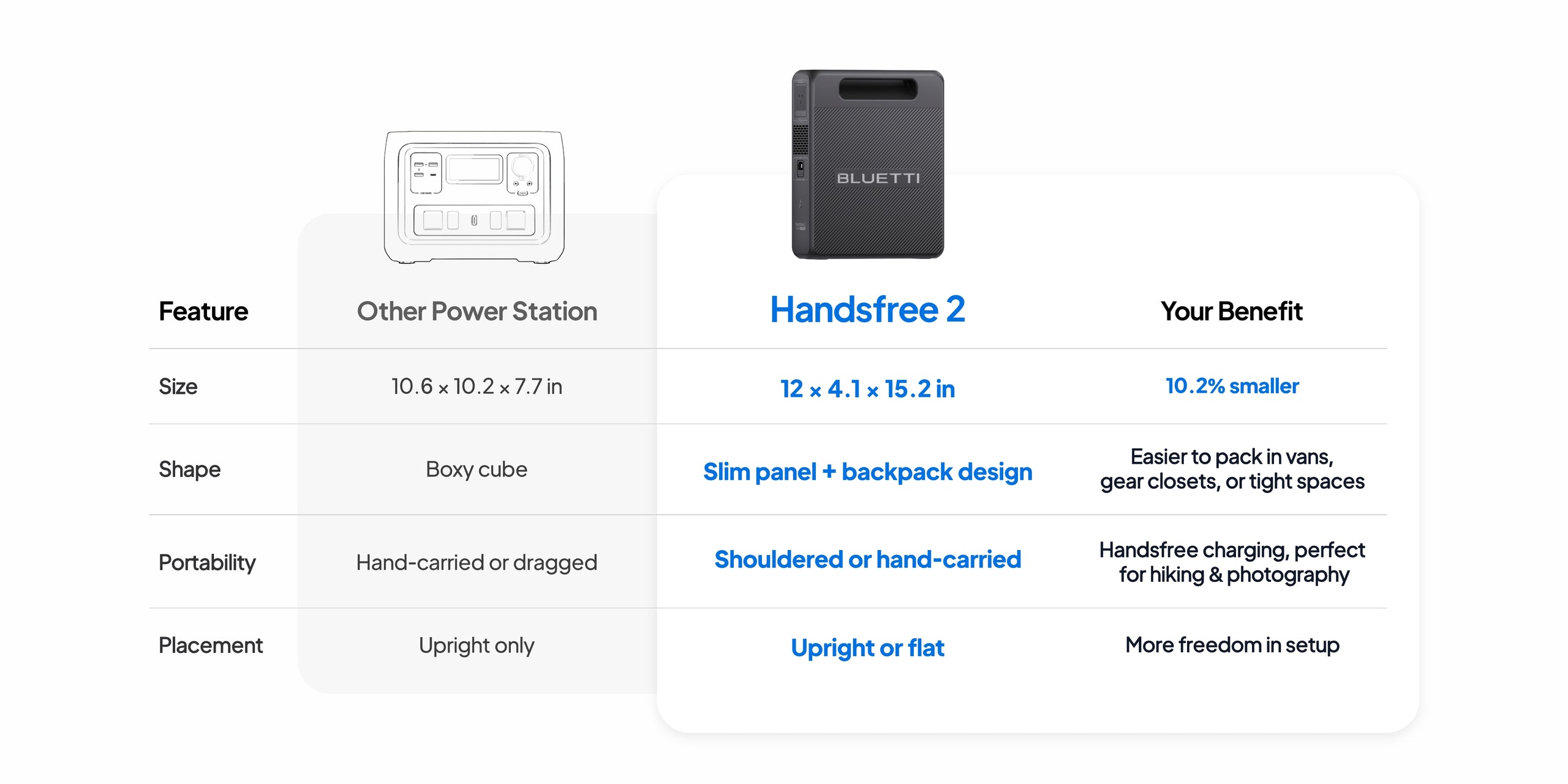 1. Bulit with an all-new modular wireless design and high-density LiFePO4 battery cells, its compact structure is 3X thinner than traditional power stations.