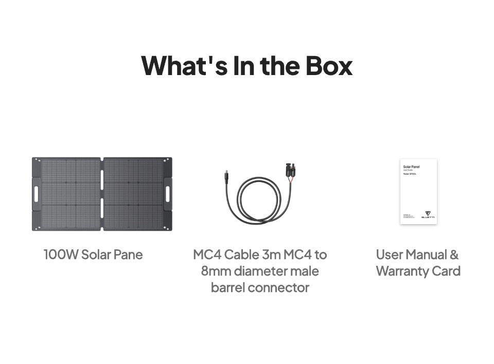 Under ideal conditions, the 100W solar panel can produce up to 90W of power. Actual output can vary based on factors like sunlight intensity, weather, temperature, shading, and panel orientation. For the best results, try to position the panel to get as much direct sunlight as possible. -