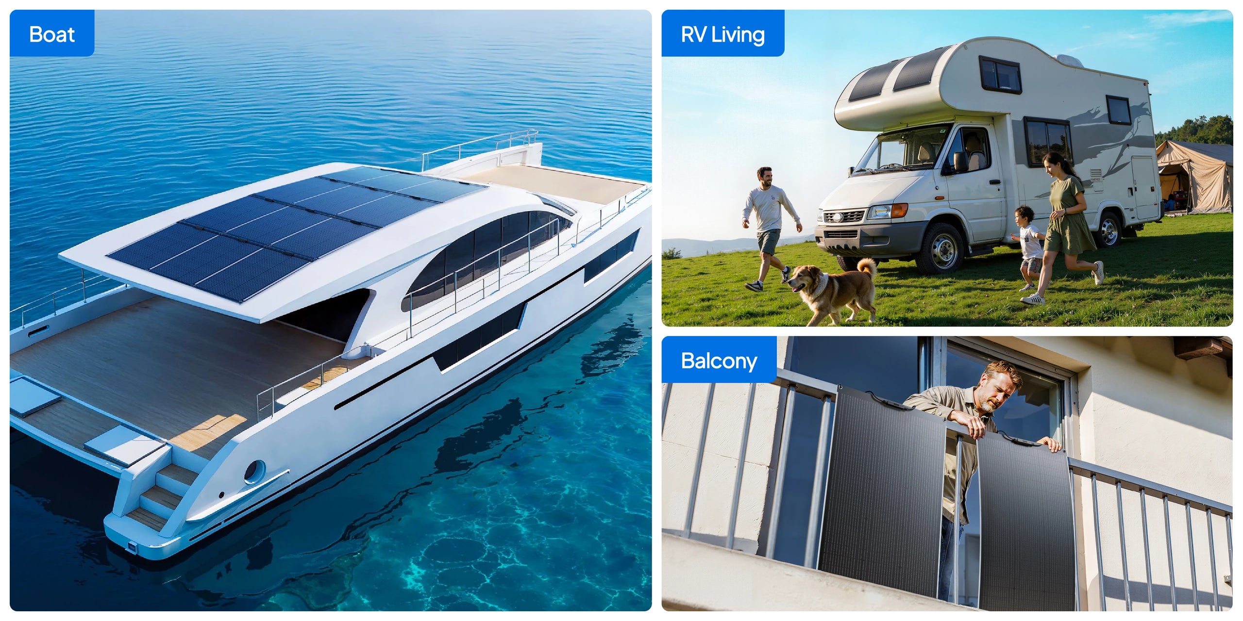 A:Flexible panels: Lightweight, thin, and bendable, ideal for curved surfaces like RV roofs or boat decks.